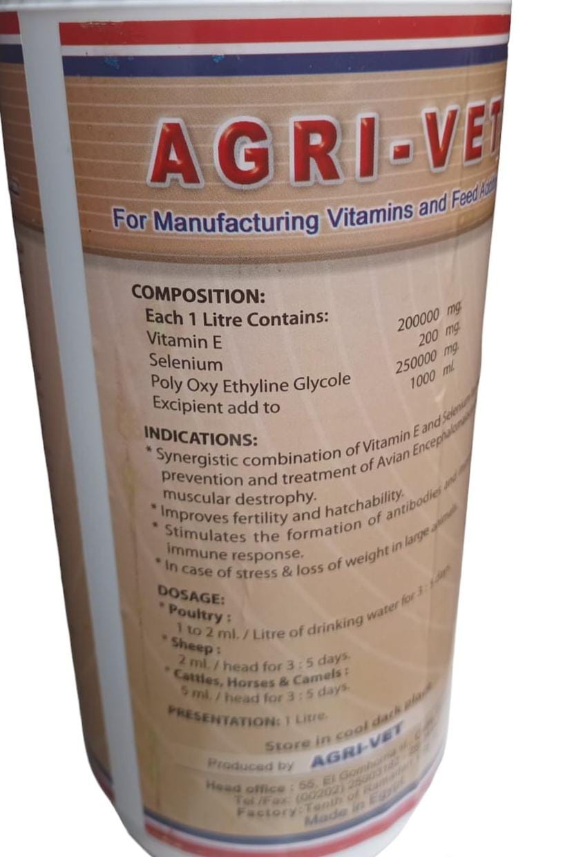 مكمل غذئي غني بفيتامين هـ و السيلنيوم للدواجن و الأبقار و الأغنام و الماعز و الجمال .